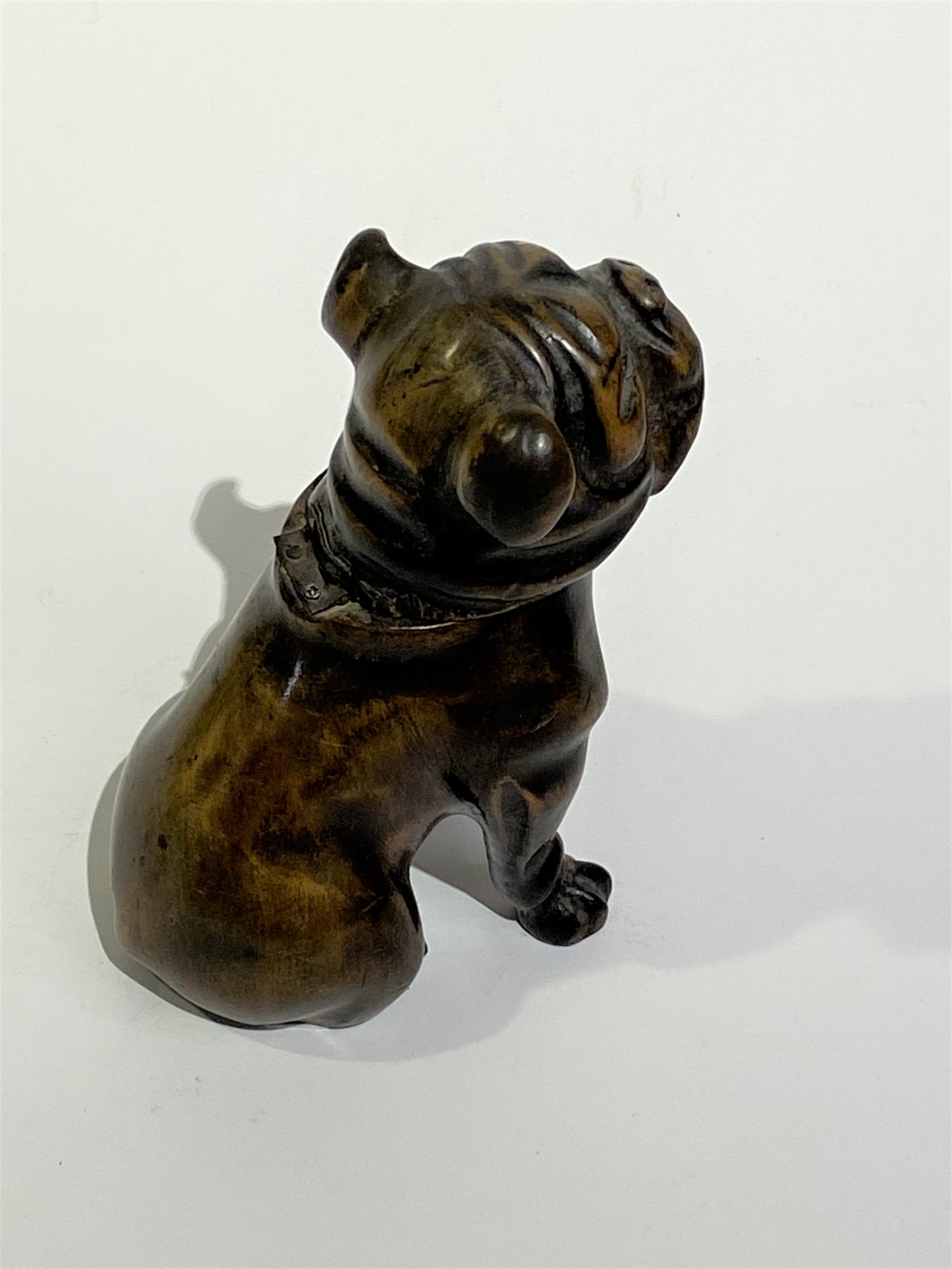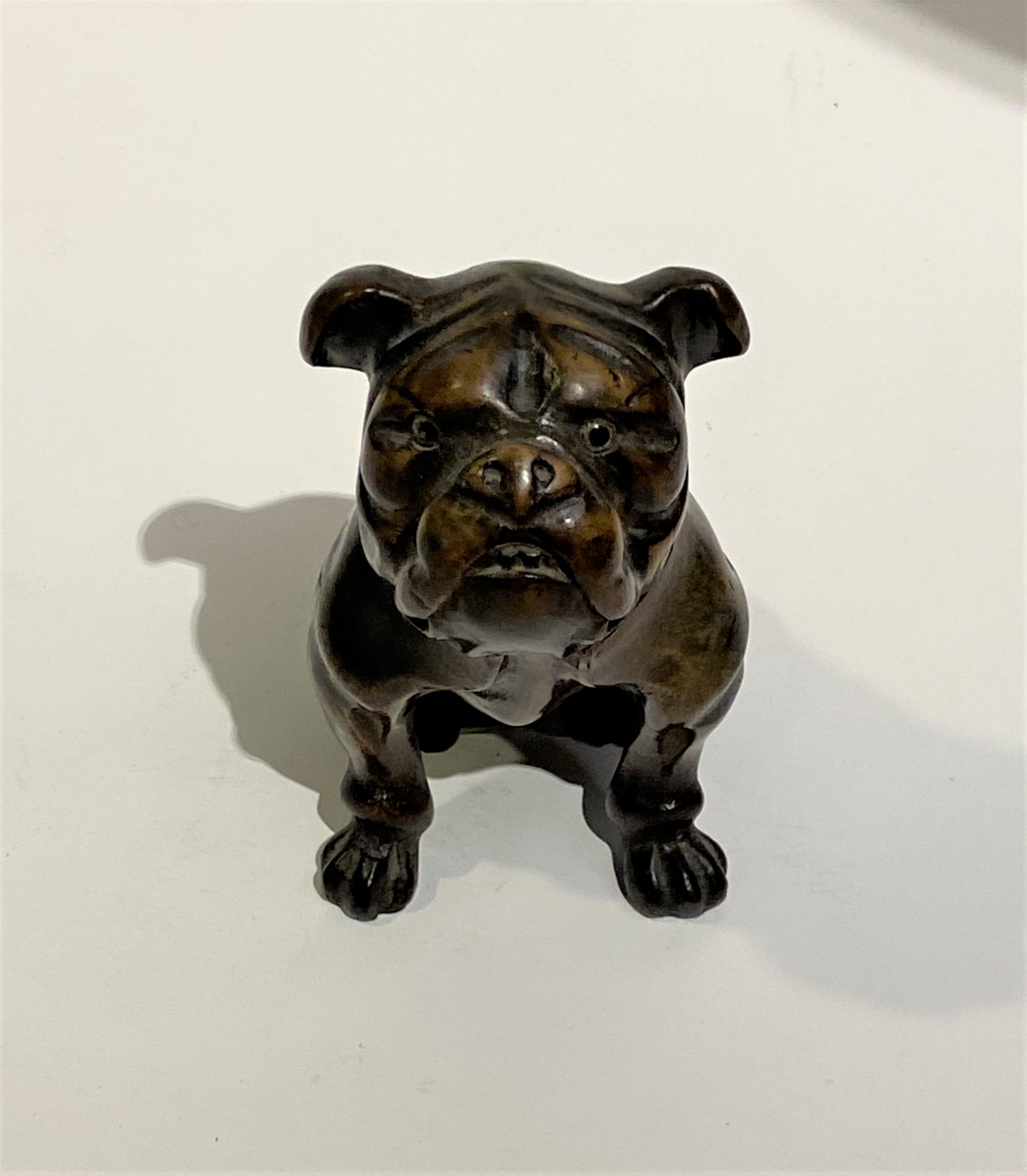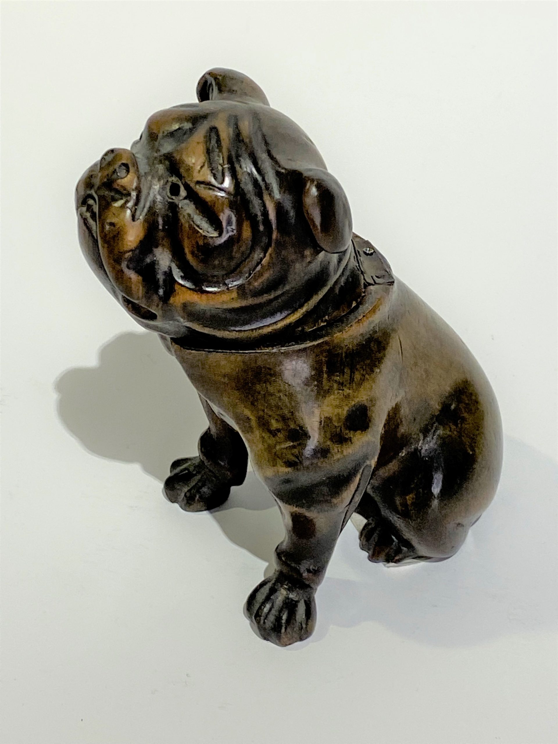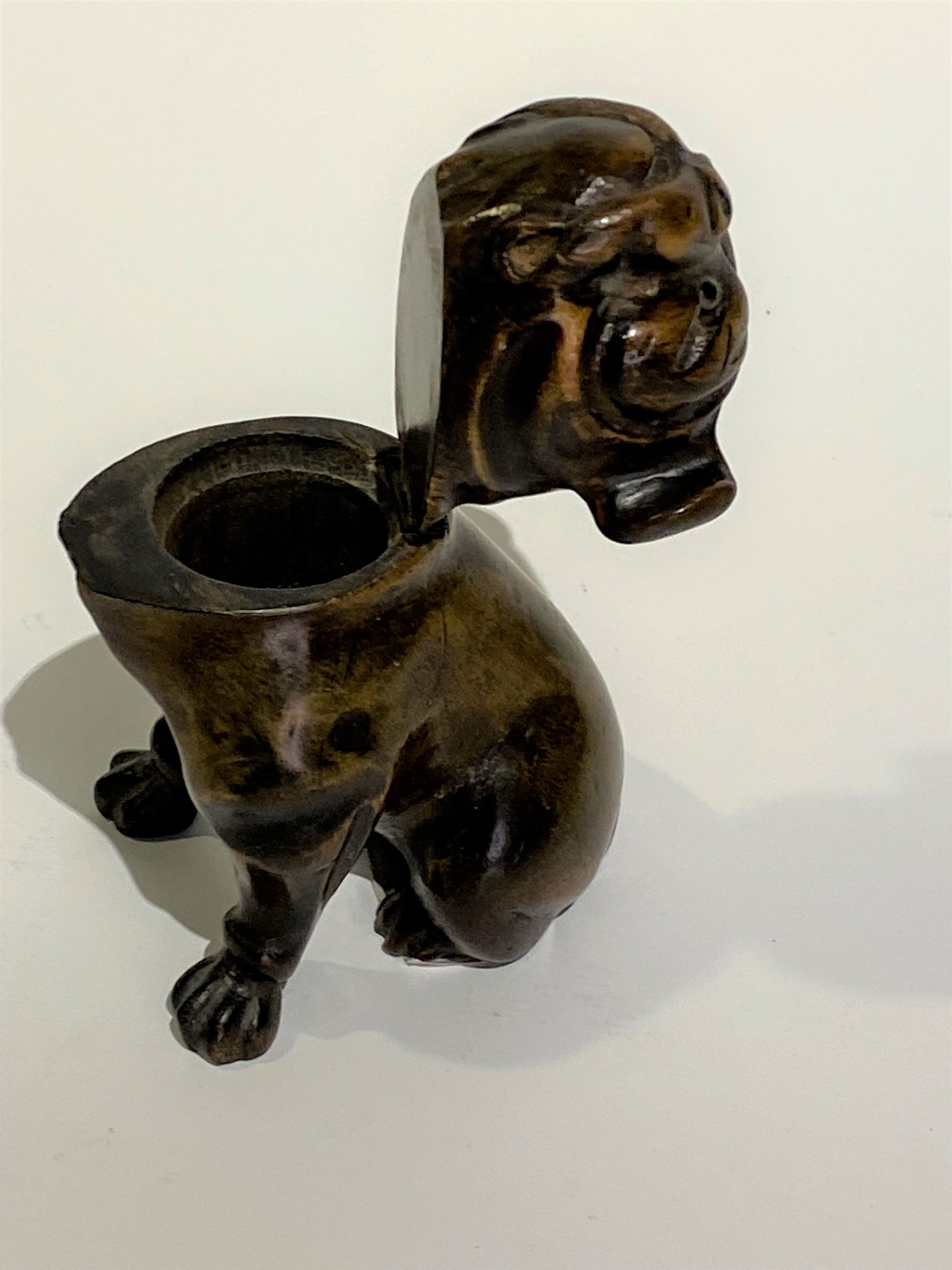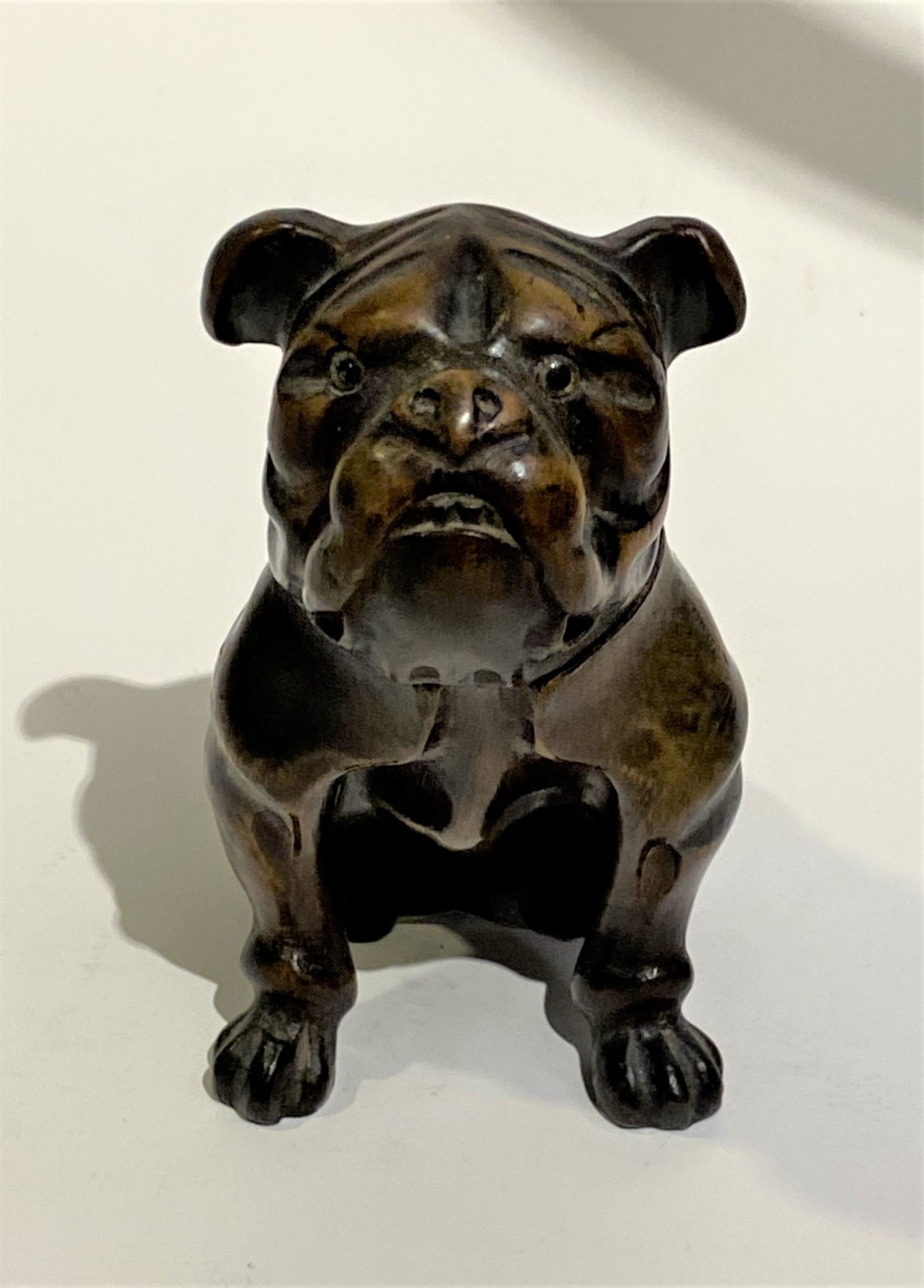 https://www.woodandhogan.com/inventory/19th-century-carved-bulldog-inkwell/ 19th Century Carved Bulldog Inkwell Item #: WH-4490 Dimensions: 3""W 3"D 5"H Description: Fine 19th Century Carved Bulldog Inkwell from England. Status: Antique Image Gallery: For additional product information, contact Wood & Hogan: 200 Lexington Avenue, Rm. 812, New York, NY, USA 10016-6101 (212) 532-7440, (212) 532-4640 FAX, sales@woodandhogan.com. Back You also might like: Antique Walnut & Brass Brazier Gilt Horizontal Mirror Old Majolica Asparagus Dish & Stand Large Old Carved and Tiered Giltwood Sunburst Convex Mirror Oliver Marquet Oystery Mirror Adam Style Gilt Frame Mirror