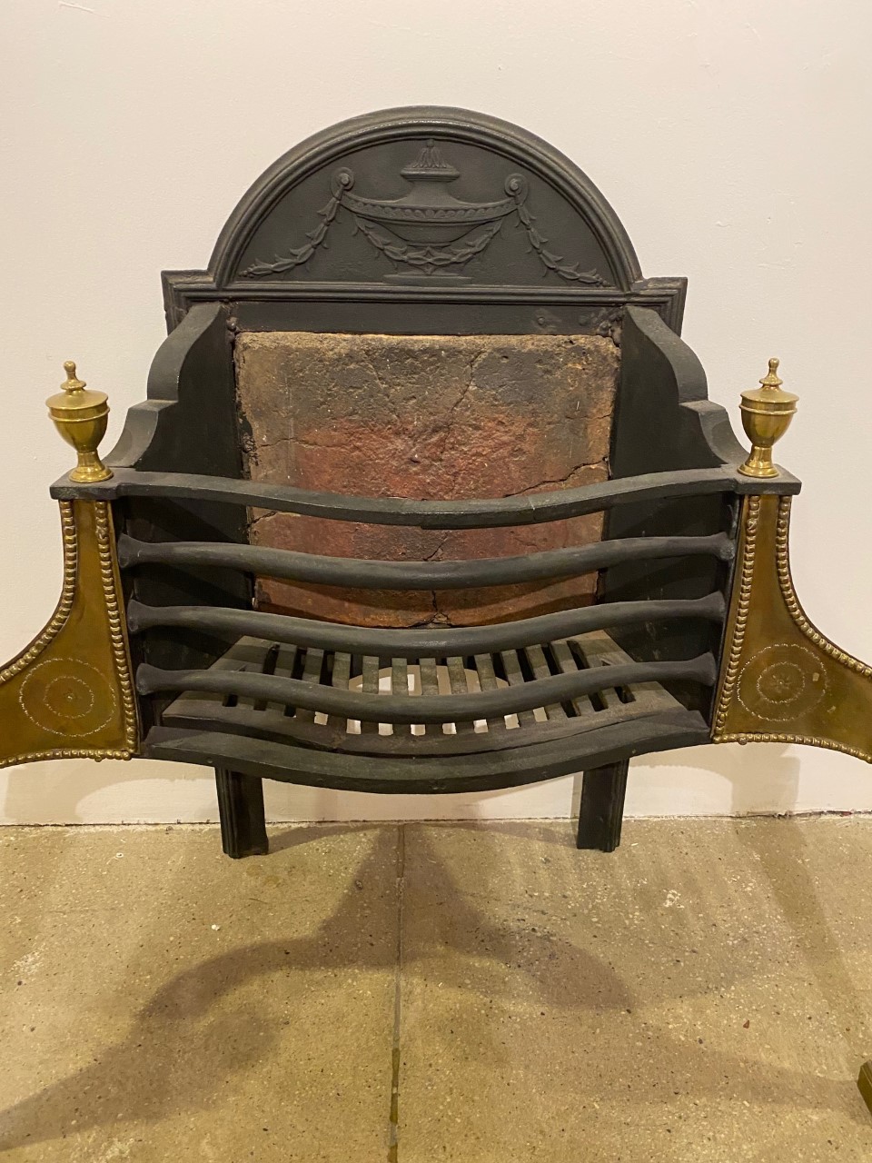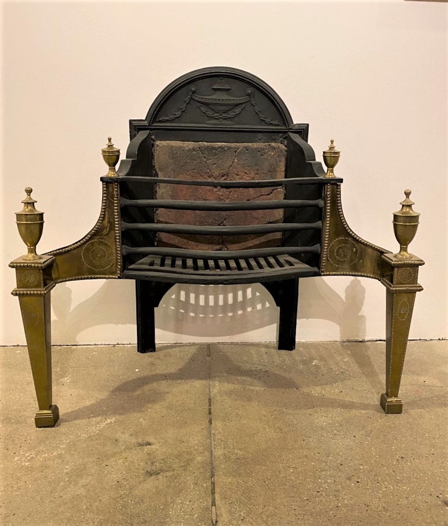 19th Century English Brass and Iron Decorative Fire Grate Basket