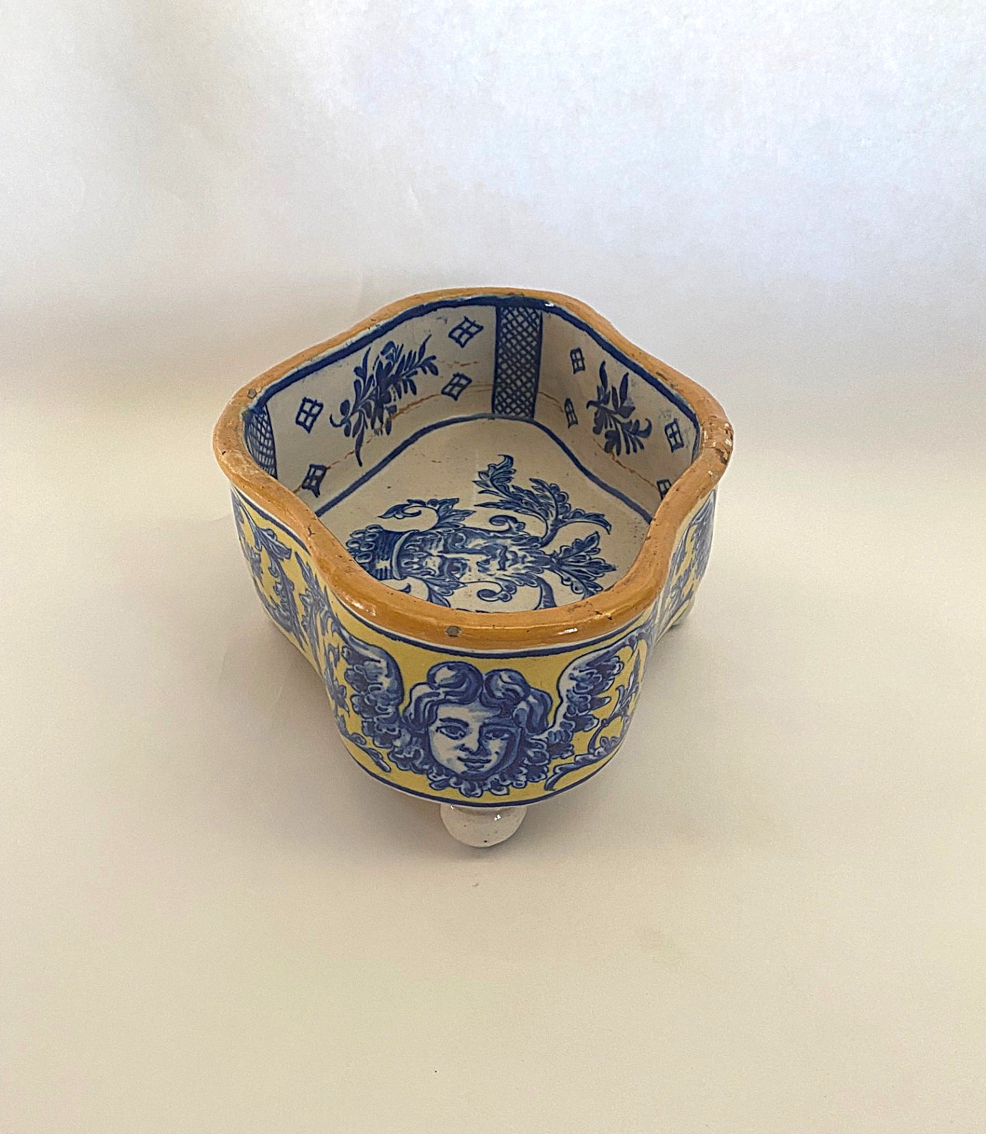 https://www.woodandhogan.com/inventory/19th-century-majolica-jardiniere/ 19th Century Majolica Jardiniere Item #: WH-3573 Dimensions: 12 1/2"W 9"D 4 1/2"H Description: 19th Century serpentine shaped decorative majolica jardiniere on bun feet. Status: Antique Image Gallery: For additional product information, contact Wood & Hogan: 200 Lexington Avenue, Rm. 812, New York, NY, USA 10016-6101 (212) 532-7440, (212) 532-4640 FAX, sales@woodandhogan.com. Back You also might like: Carved Double Frame Mirror Georgian Style Gold Frame Mirror Old Round Black Lacquered Japanese Box w/ Chinoiserie Decoration Adam Style Gilt Frame Mirror Old Majolica Asparagus Dish & Stand Queen Anne Style Gold Leaf Mirror