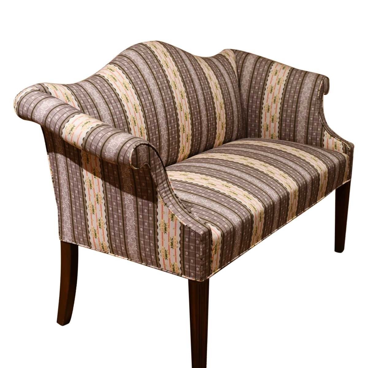 Mahogany Chippendale Style Low and Shallow Small Settee. Featuring Serpentine Back, Rolled Arms and Tight Seat. Ideal for the end of a bed or dressing room.