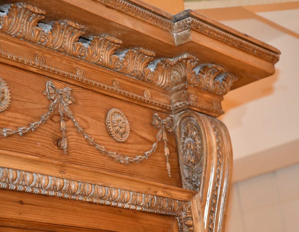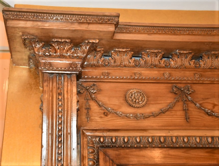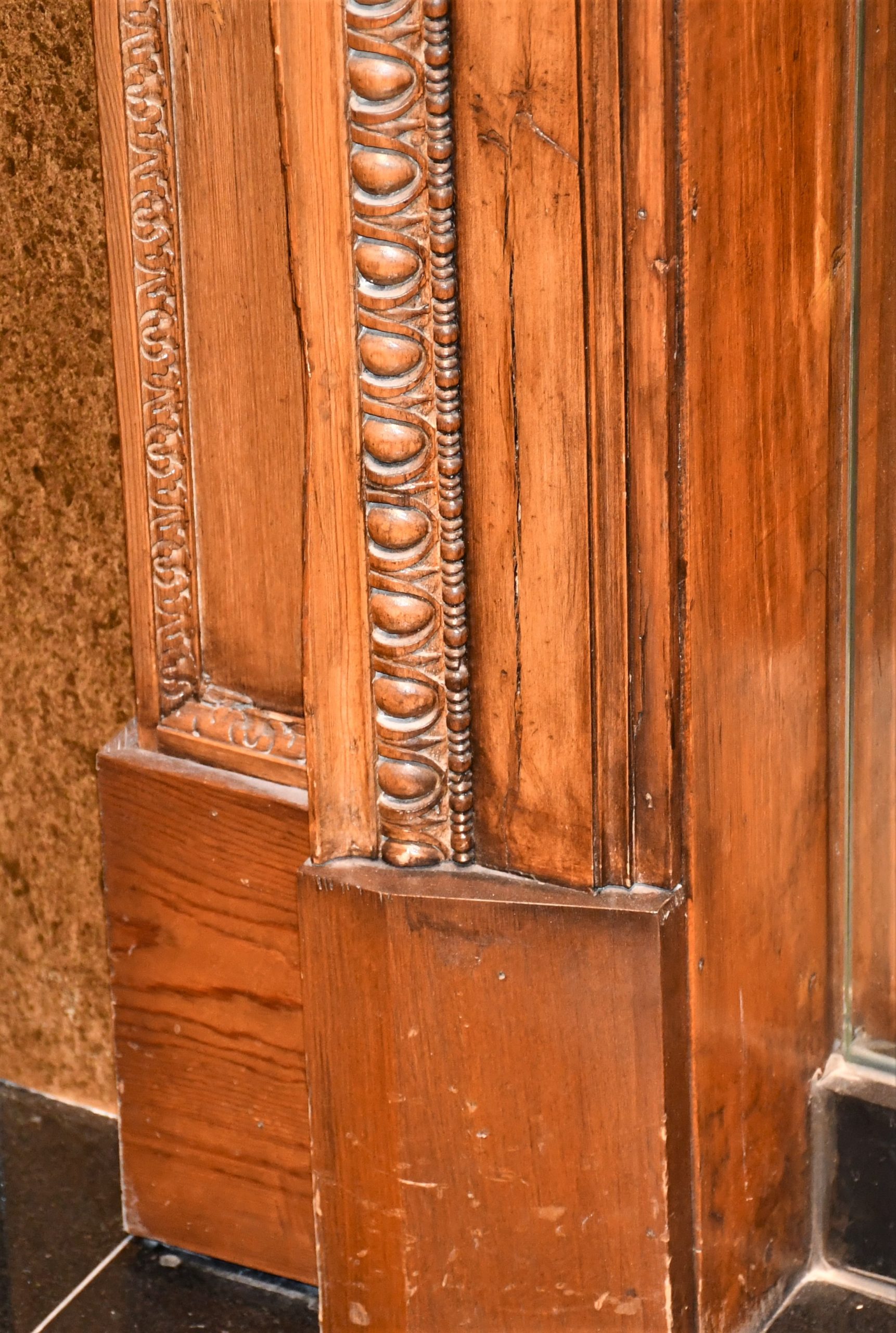 https://www.woodandhogan.com/inventory/antique-carved-adam-doorway/ Antique Hand Carved Adam Doorway Item #: WH-8298 Dimensions: 81"W 10"D 96"H Description: Sensational Antique Pine Adam Carved Doorway from England with Exceptional Hand Carved Detail (Frieze of later date). Circa 1780. A True Show Stopper! Opening: 54″W 80″H. Status: Antique Image Gallery: For additional product information, contact Wood & Hogan: 200 Lexington Avenue, Rm. 812, New York, NY, USA 10016-6101 (212) 532-7440, (212) 532-4640 FAX, sales@woodandhogan.com. Back You also might like: 19th C. Teak Campaign Box Old Majolica Asparagus Dish & Stand 19th Century Chintz Bath Suite Set of 3 Old Staffordshire Milk Jugs 19th Century Cast Iron Umbrella Stand Rare 19th Century Military Barometer