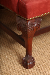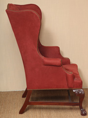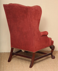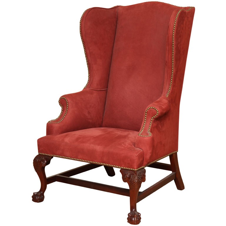 https://www.woodandhogan.com/inventory/ball-claw-wing-chair/ Ball & Claw Wing Chair Item #: WU-306 Dimensions: 31"W 35"D 48"H. Description: Mahogany Wing Chair with Carved Ball & Claw” Front Legs. COM: 7 1/2 Yards 50″ Plain. / COL: 130 SQ. FT. (Shown in leather with brass nail trim – additional). Image Gallery: For additional product information, contact Wood & Hogan: 200 Lexington Avenue, Rm. 812, New York, NY, USA 10016-6101 (212) 532-7440, (212) 532-4640 FAX, sales@woodandhogan.com. Back You also might like: Cranworth Wing Chair OLDFIELD WING CHIAR Cranworth Wing Chair Ball & Claw Wing Chair PORTER’S WING CHAIR Essex Wing Chair