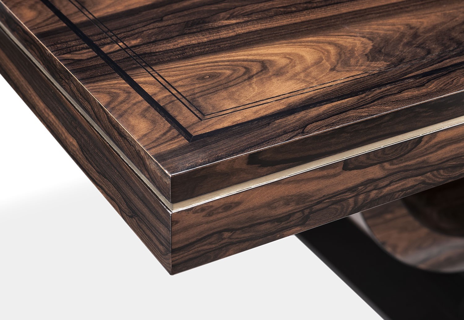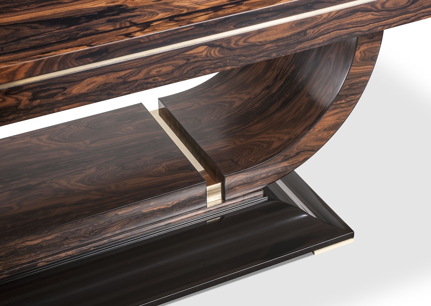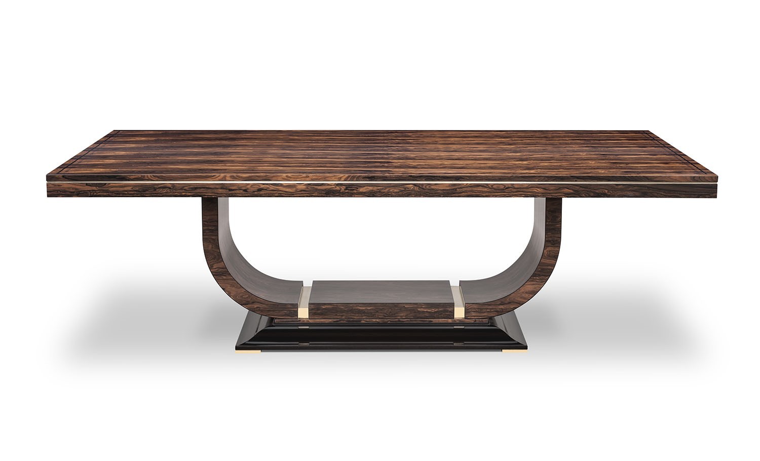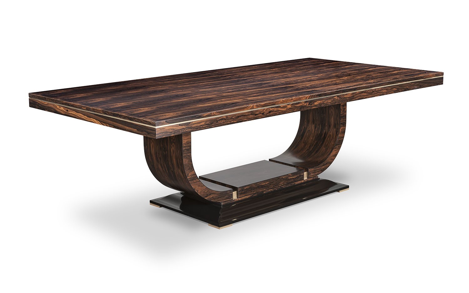 https://www.woodandhogan.com/inventory/bradford-table/ Bradshaw Table Item #: DT-BRADSHAW Dimensions: 96"W 48"D 30"H Description: Impressive Art Deco style Ziricote Table with Ebony line inlay and accent Brass band to frieze and base. Image Gallery: For additional product information, contact Wood & Hogan: 200 Lexington Avenue, Rm. 812, New York, NY, USA 10016-6101 (212) 532-7440, (212) 532-4640 FAX, sales@woodandhogan.com. Back You also might like: Radial Mahogany Extending Circular Table. Mahogany Circular Table in the Regency Manner. Mahogany Regency Style Circular Table. Regency Rosewood Dining Table Regency Style Burr Walnut Extending Circular Table. ELLINGTON TABLE