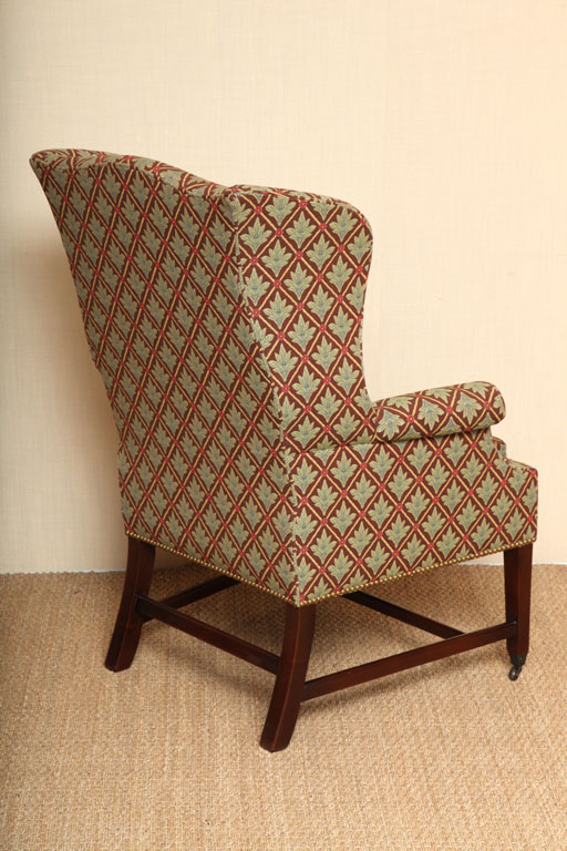 https://www.woodandhogan.com/inventory/cranworth-wing-chair/ Cranworth Wing Chair Item #: WU-303 SALE Dimensions: 31"W 29 1/2"D 43 1/2"H. Description: Mahogany Sheraton Style Wing Chair on Square Tapered Front Legs Terminating in Brass Shoe & Caster. 80% Goose Down -20% Feather Cushion. COM: F Schumacher D Amleville Trellis, Cafe Status: Special Pricing for a limited time. Pricing: STANDARD - $8,995.00. SALE NET PRICE - $3,995.00. AS IS. Image Gallery: For additional product information, contact Wood & Hogan: 200 Lexington Avenue, Rm. 812, New York, NY, USA 10016-6101 (212) 532-7440, (212) 532-4640 FAX, sales@woodandhogan.com. Back You also might like: PORTER’S WING CHAIR Georgian Mahogany Open Arm Chair. George III style Mahogany Dining Chair. Cranworth Wing Chair BEAUMONT SOFA Cranworth Wing Chair