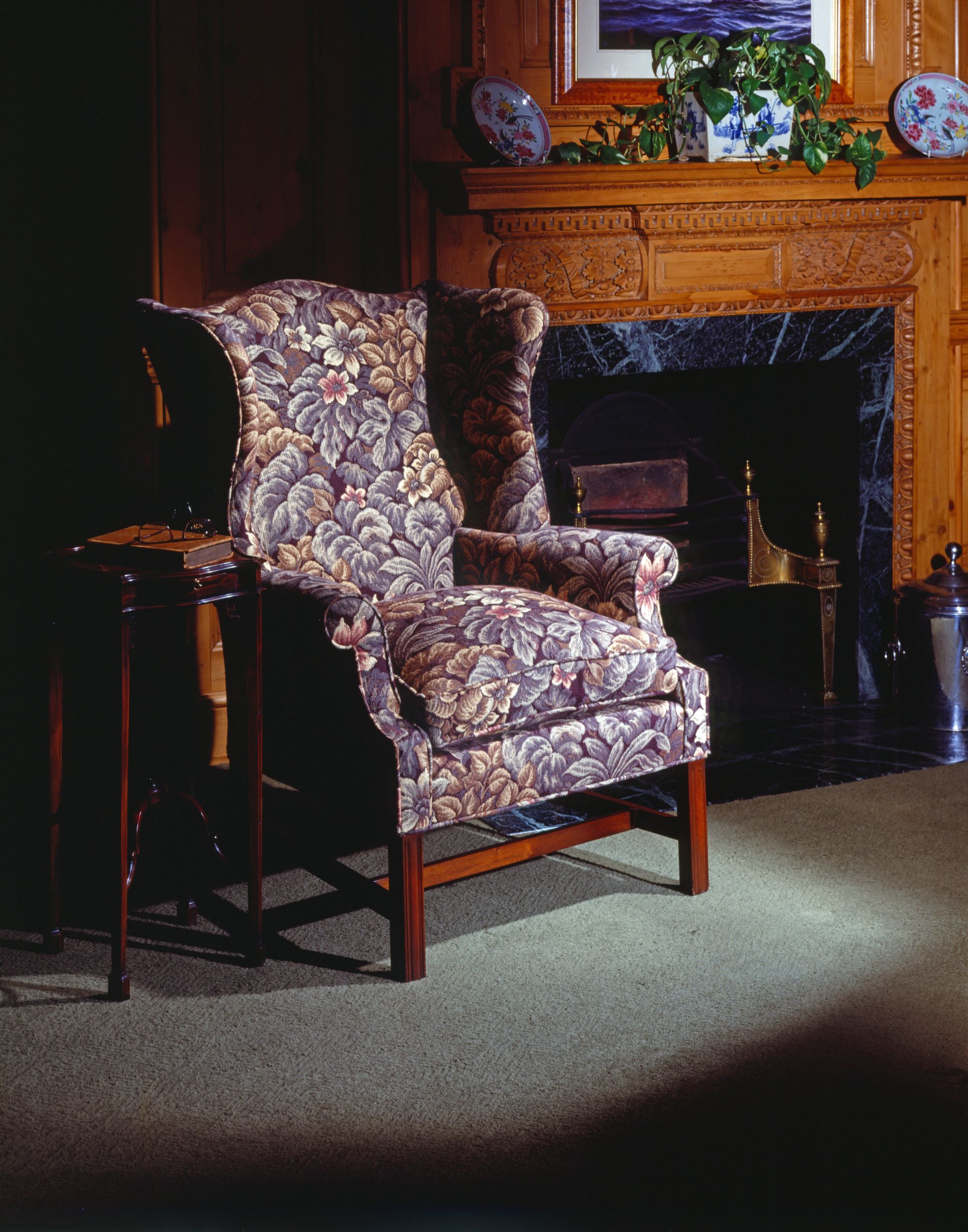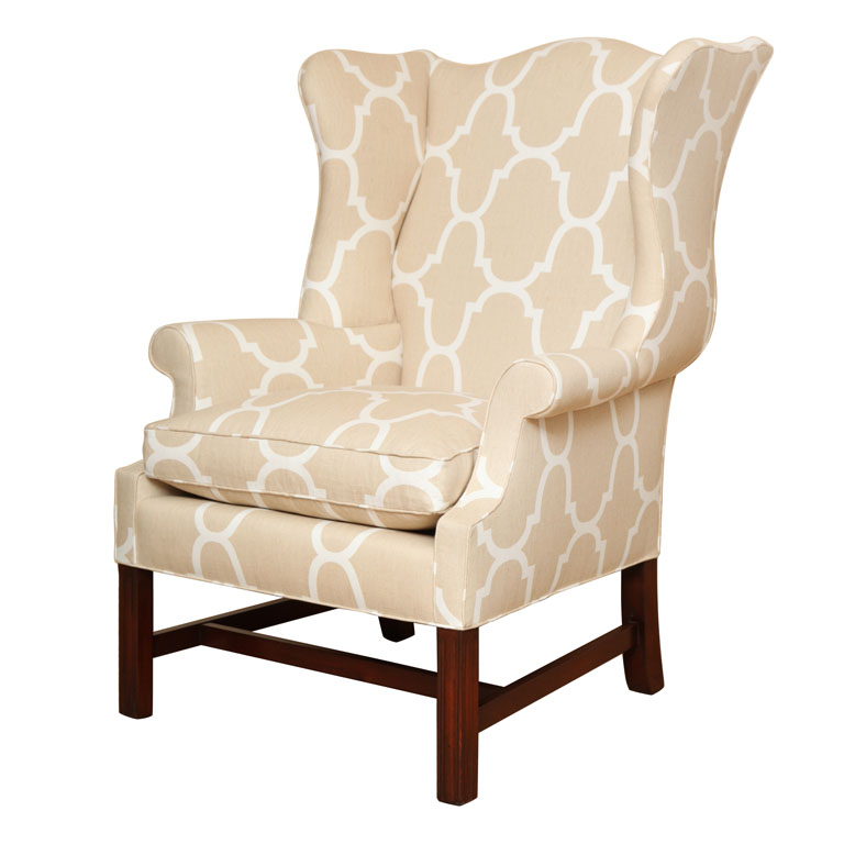 https://www.woodandhogan.com/inventory/essex-wing-chair/ Essex Wing Chair Item #: WU-302 Dimensions: 31"W 32"D 42"H. Description: Mahogany Noble Curved Wing Chair with Rolled Arms on Molded Legs. 80% Goose Down- 20% Feather Cushion. COM: 7 Yards 50″ Plain. Image Gallery: For additional product information, contact Wood & Hogan: 200 Lexington Avenue, Rm. 812, New York, NY, USA 10016-6101 (212) 532-7440, (212) 532-4640 FAX, sales@woodandhogan.com. Back You also might like: Cranworth Wing Chair Essex Wing Chair LITCHFIELD WING CHAIR PORTER’S WING CHAIR Ball & Claw Wing Chair Blenheim Wing Chair