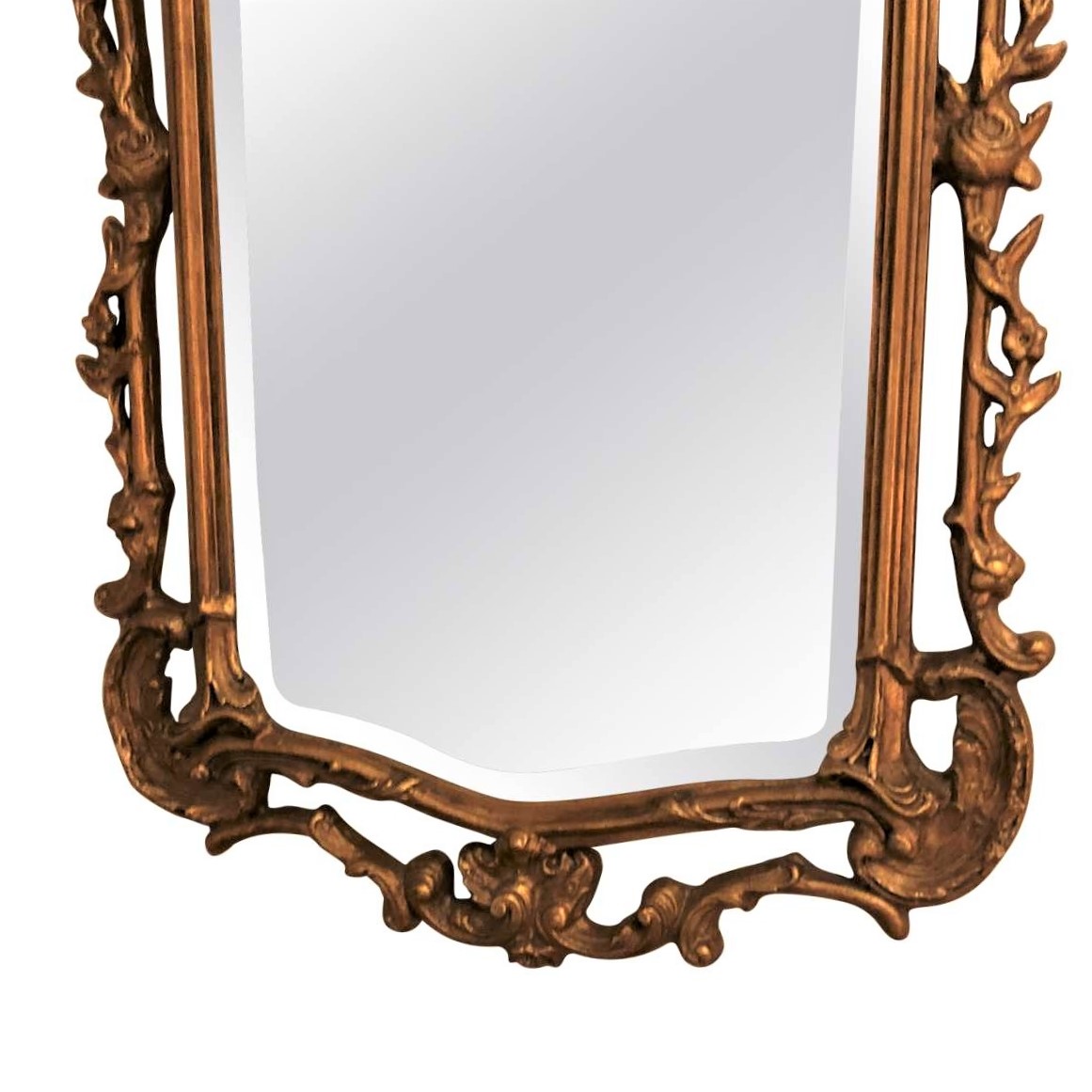 https://www.woodandhogan.com/inventory/gilt-chinese-chippendale-mirror/ Gilt Chinese Chippendale Mirror Item #: WH-4352 Dimensions: 27"W 52"H Description: Gilt Chinese Chippendale Style Mirror with Open Top Shaped Pagoda and Bevel Glass. Image Gallery: For additional product information, contact Wood & Hogan: 200 Lexington Avenue, Rm. 812, New York, NY, USA 10016-6101 (212) 532-7440, (212) 532-4640 FAX, sales@woodandhogan.com. Back You also might like: Mahogany & Gilt Mirror Antique Walnut Trunbridge Parquetry Box Pair of Old Decorative Tall Vases Old Majolica Asparagus Dish & Stand Rare 19th Century Military Barometer Gilt Chinese Chippendale Mirror