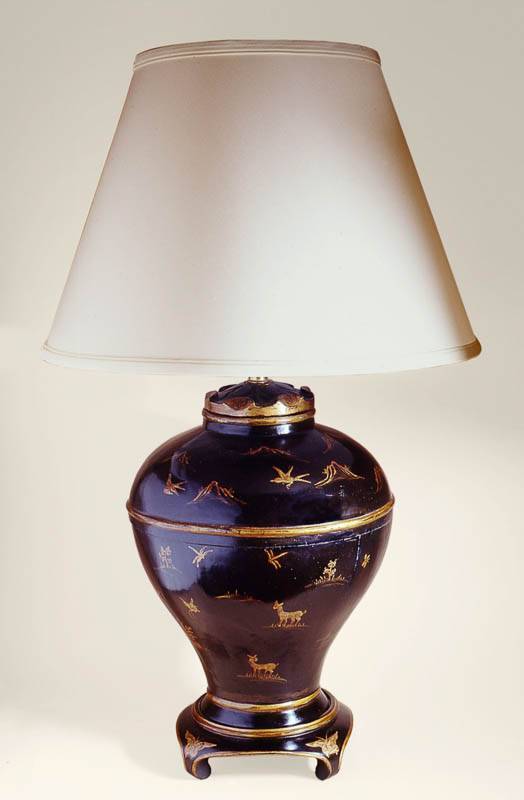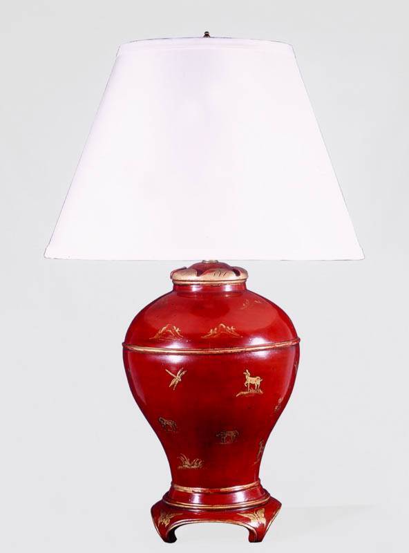 https://www.woodandhogan.com/inventory/lacquered-and-decorated-urn-shape-lamp/ Lacquered and Decorated Urn Shape Lamp Item #: BC-9686 Dimensions: 11" Diameter 30"H. Description: Lacquer Urn Shaped Lamp with Gold Chinoiserie Decoration. Offered in Red or Black Lacquer. Image Gallery: For additional product information, contact Wood & Hogan: 200 Lexington Avenue, Rm. 812, New York, NY, USA 10016-6101 (212) 532-7440, (212) 532-4640 FAX, sales@woodandhogan.com. Back You also might like: Lacquered and Decorated Urn Shape Lamp “Mellon” Table Lamp with Antique White Finish and Shade with Gilt Trim Pair of Lucy Cope Clear Crystal Mimi Sphere Lamps with Sweetie Dove Silk Shades Chapman Brass Urn Lamp with Black Shade Antique Ginger Jar Lamp Antique Chinese Hand Painted Porcelain Vase Lamp