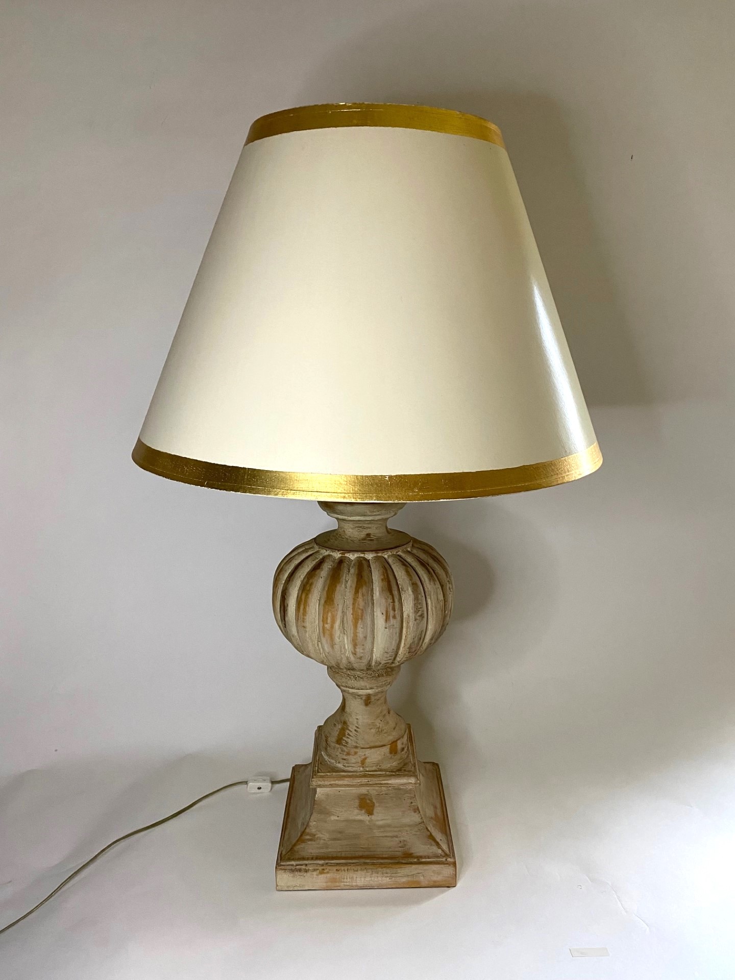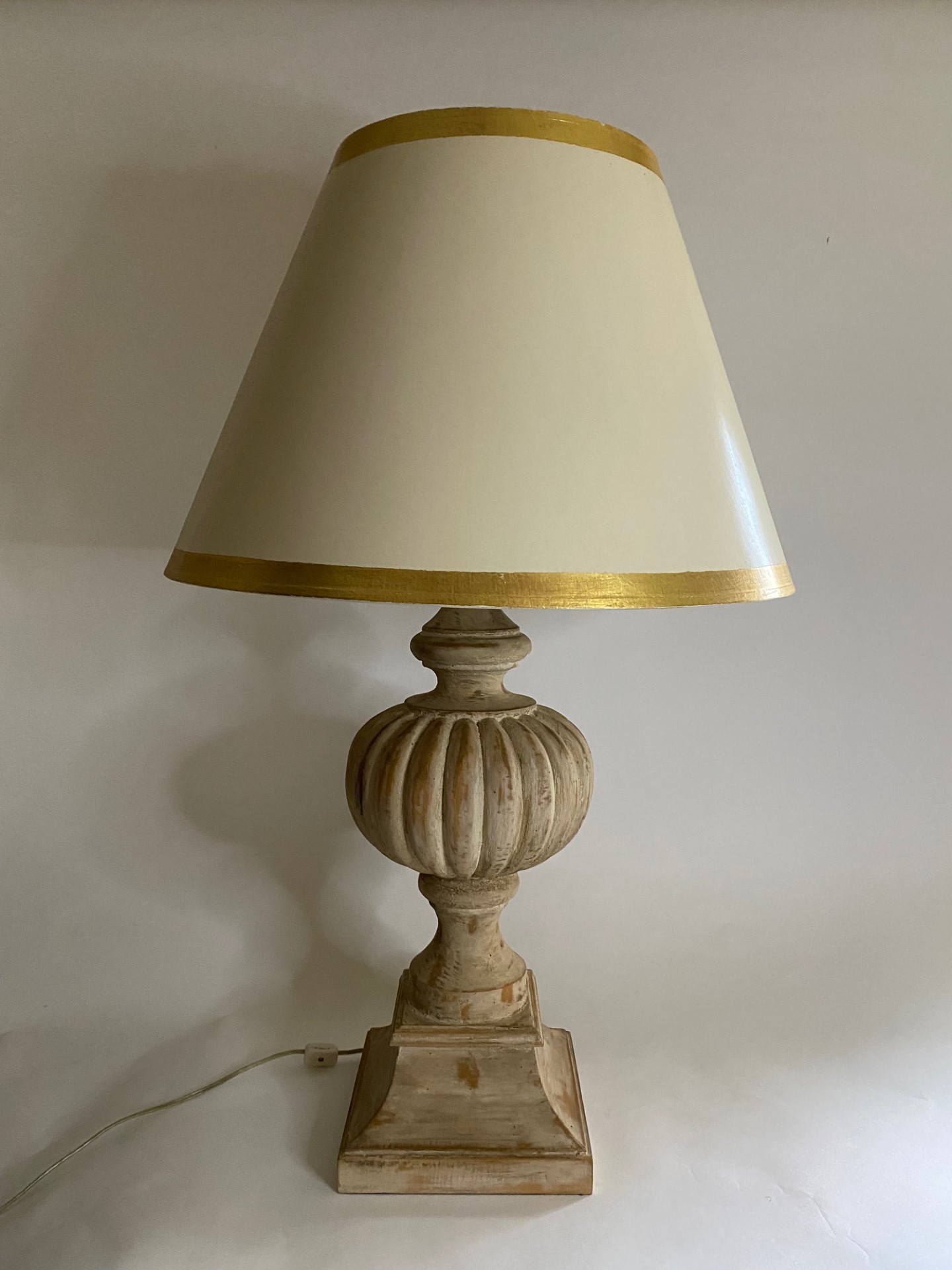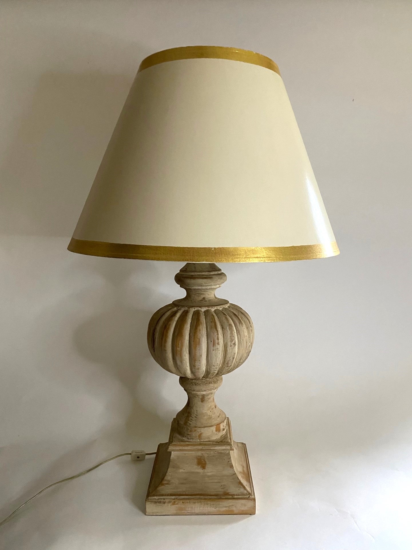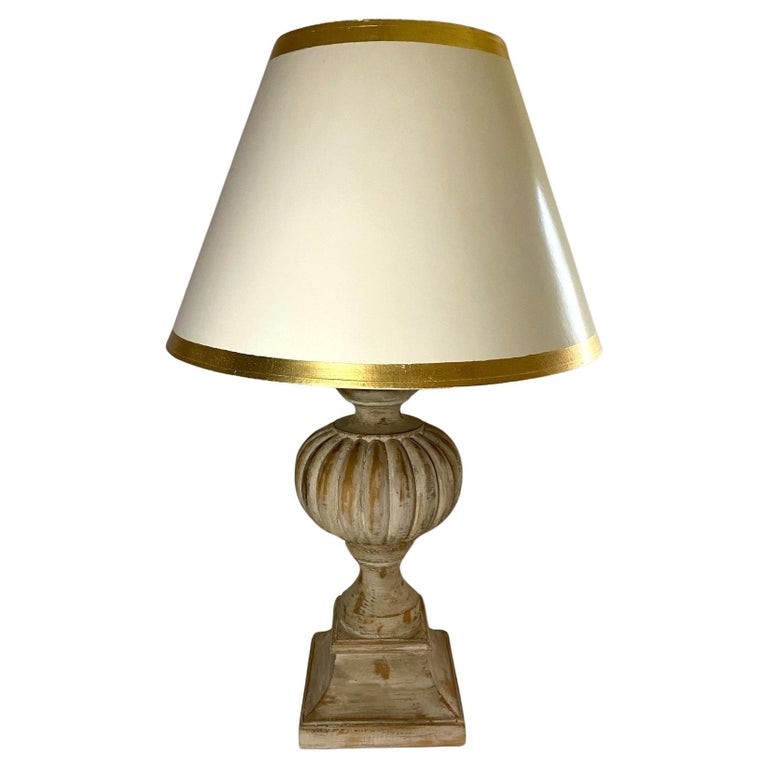 “Mellon” Table Lamp with Antique White Finish and Shade with Gilt Trim